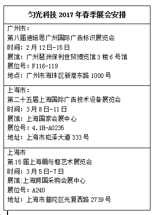 勻光科技2017年春季展會安排